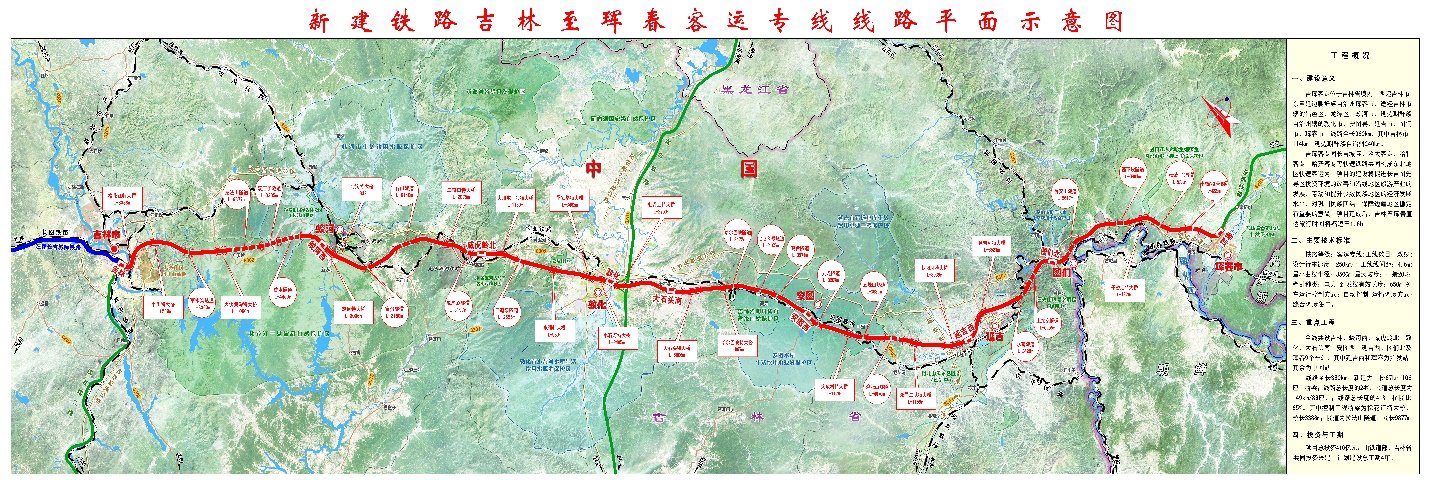 主要工點,橋梁為松花江特大橋,全長3.657km,橋址位于吉林市長圖鐵路橋上游30m,考慮與既有鐵路橋主跨對孔,跨越松花江主橋采用(55.75+96+96+55.75)m跨度的預應力混凝土連續梁。主橋采用雙線并行等高形式(承臺合建、墩身分建),雙線客專,雙線普速。隧道為拉法山隧道,位于蛟河市慶嶺鎮北約4~5km處,穿越老爺嶺中低山區,隧道全長10035m,最大埋深476m,隧道洞身結合斜井設置1處避難所。